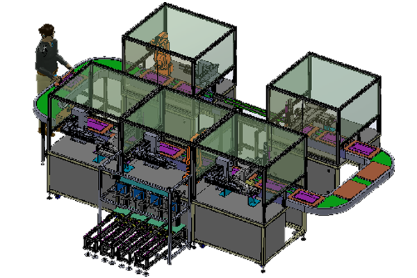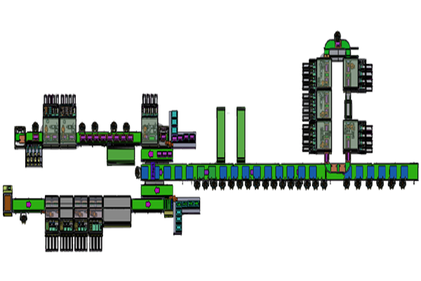 生产线分为三大部分: 1.C板主件生产线+独立生产出口、连续生产和缓存区 。 2.主板组件生产线+独立生产出口、连续生产和缓存区 。 3.主线组装生产线+自动化装配区 。