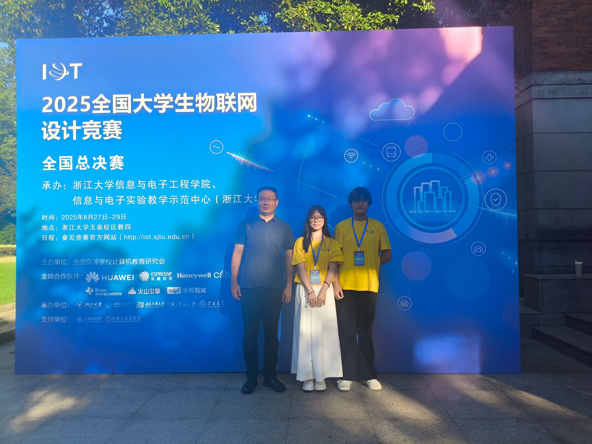 2025年全国大学生物联网设计竞赛是由全国高等学校计算机教育研究会主办、浙江大学承办。全国总决赛于2025年8月27日-29日在浙江大学玉泉校区隆重举行。本次竞赛共有来自浙江大学、上海交通大学、同济大学、西安交通大学、南京大学等800余所高校的3200余支队伍参赛。经过全国五个分赛区的评审和现场决赛,最终有220支队伍入围全国总决赛。该比赛注重作品设计的创新性、技术实现和应用价值,重点考察选手对专业技术的掌握程度、应用水平以及创新意识等。经过项目答辩、作品现场演示和评审专家质询等竞赛环节,我院参赛学生不负众望荣获全国二等奖。