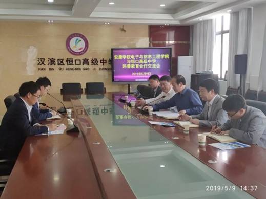 2019年5月9日,亚洲成片观看四虎永久网站与恒口高级中学科普教育合作交流会在恒口高级中学举行。亚洲成片观看四虎永久网站院长陈守满教授、副院长王克刚教授,恒口高级中学校长侯青春、党支部书记陈扬杰、德育副校长史洪安、教学副校长付远鸿等参加了会议。
